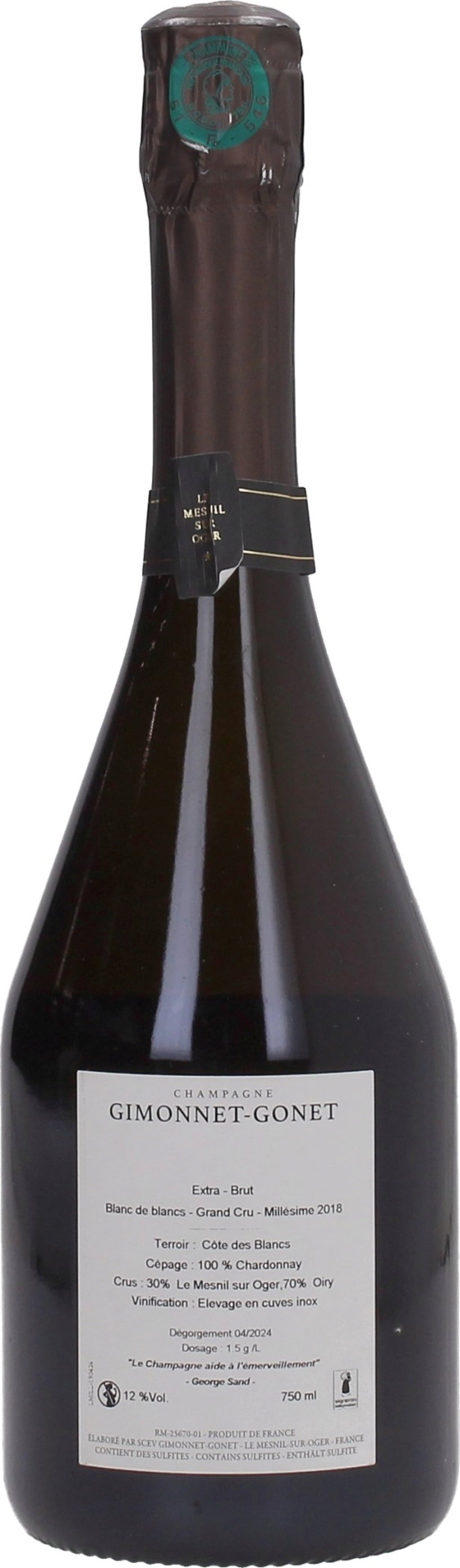 Champagne Gimonnet-Gonet Millesime 2018 Blanc de Blancs Extra Brut Grand Cru, 0,75 L