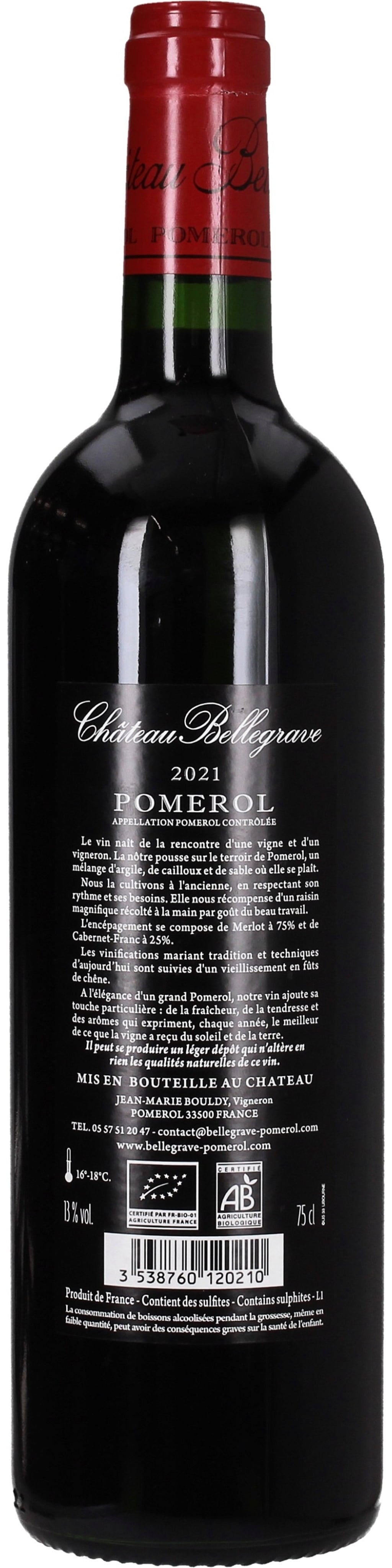 Château Bellegrave Pomerol 2021 Bio, 0,75 L