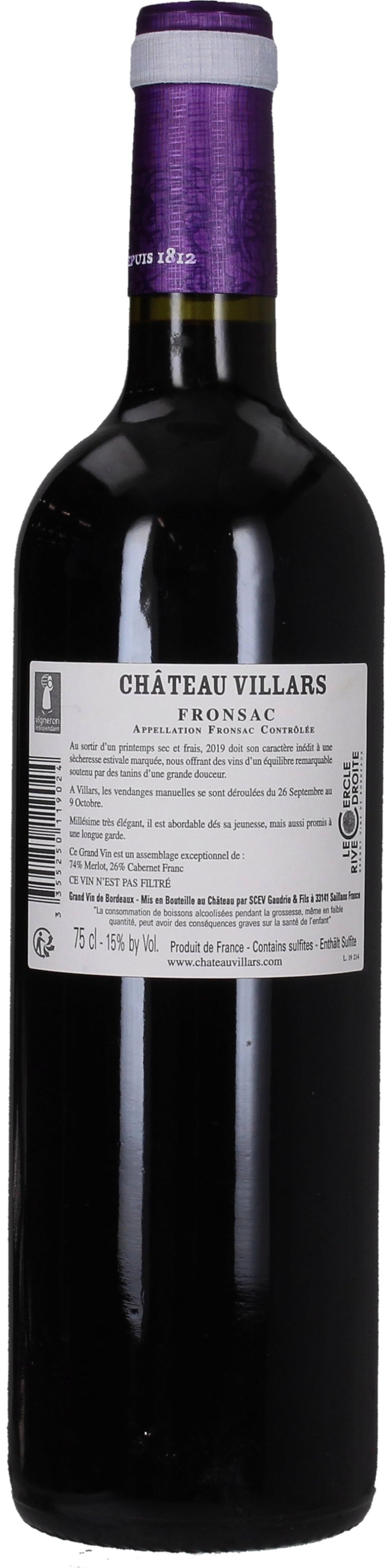 Château Villars AOC Fronsac 2019, 0,75 L