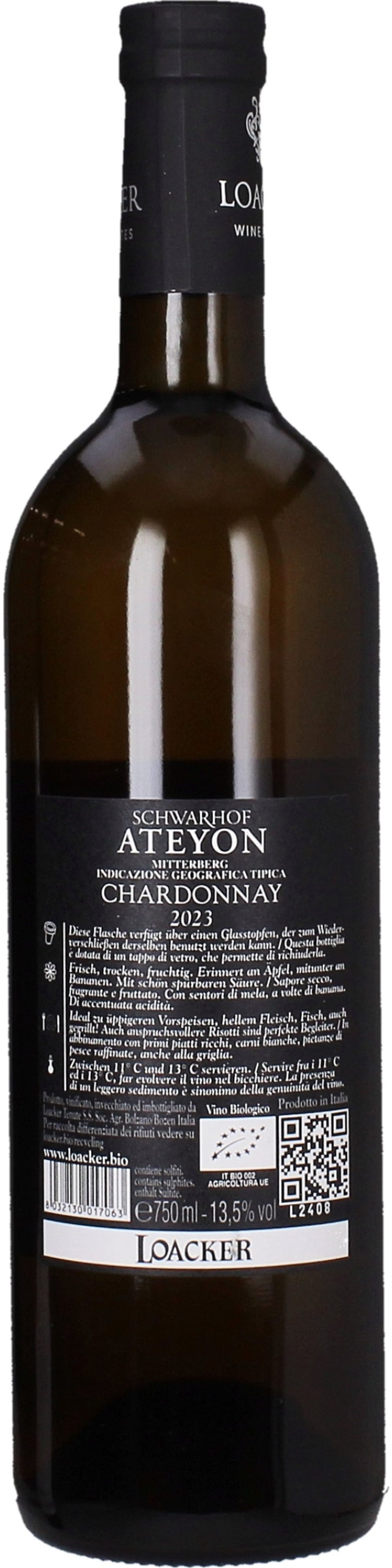 Loacker Schwarhof Chardonnay Ateyon IGT 2023 Bio, 0,75 L